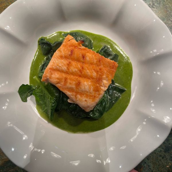 Лосось со шпинатом и соусом зеленый шисо