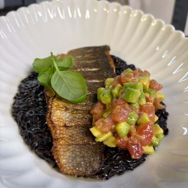 Сибас с рисом неро в итальянском стиле