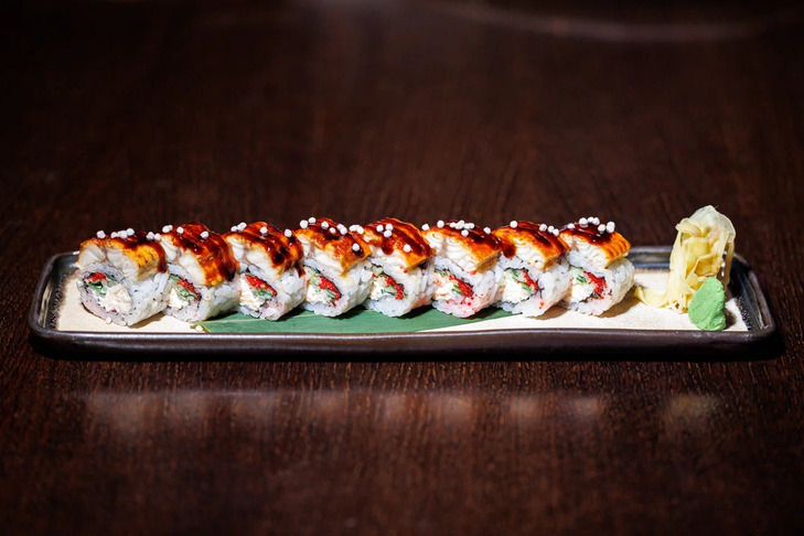 Оритсу ролл с угрем, миксом краба и тобико