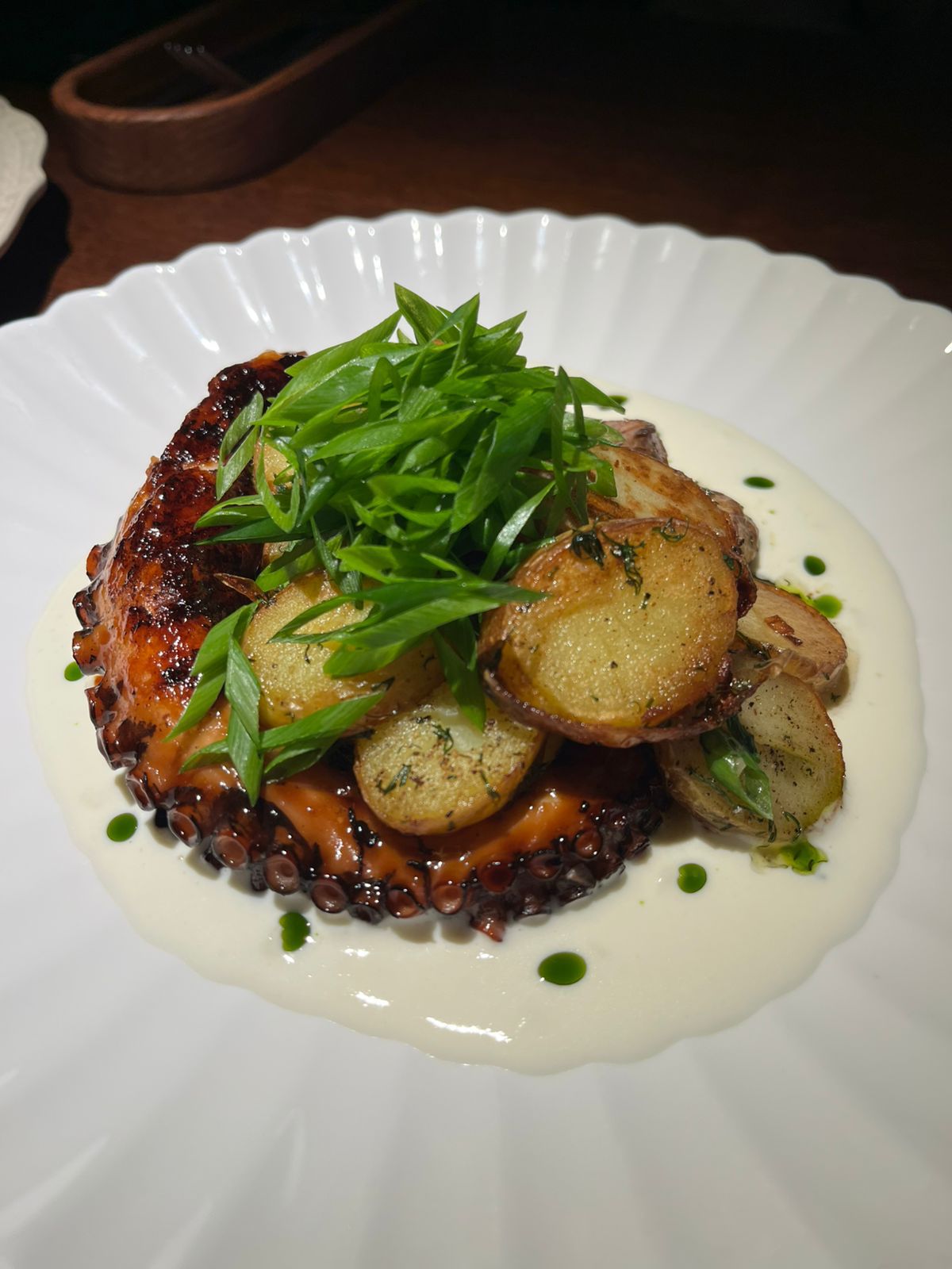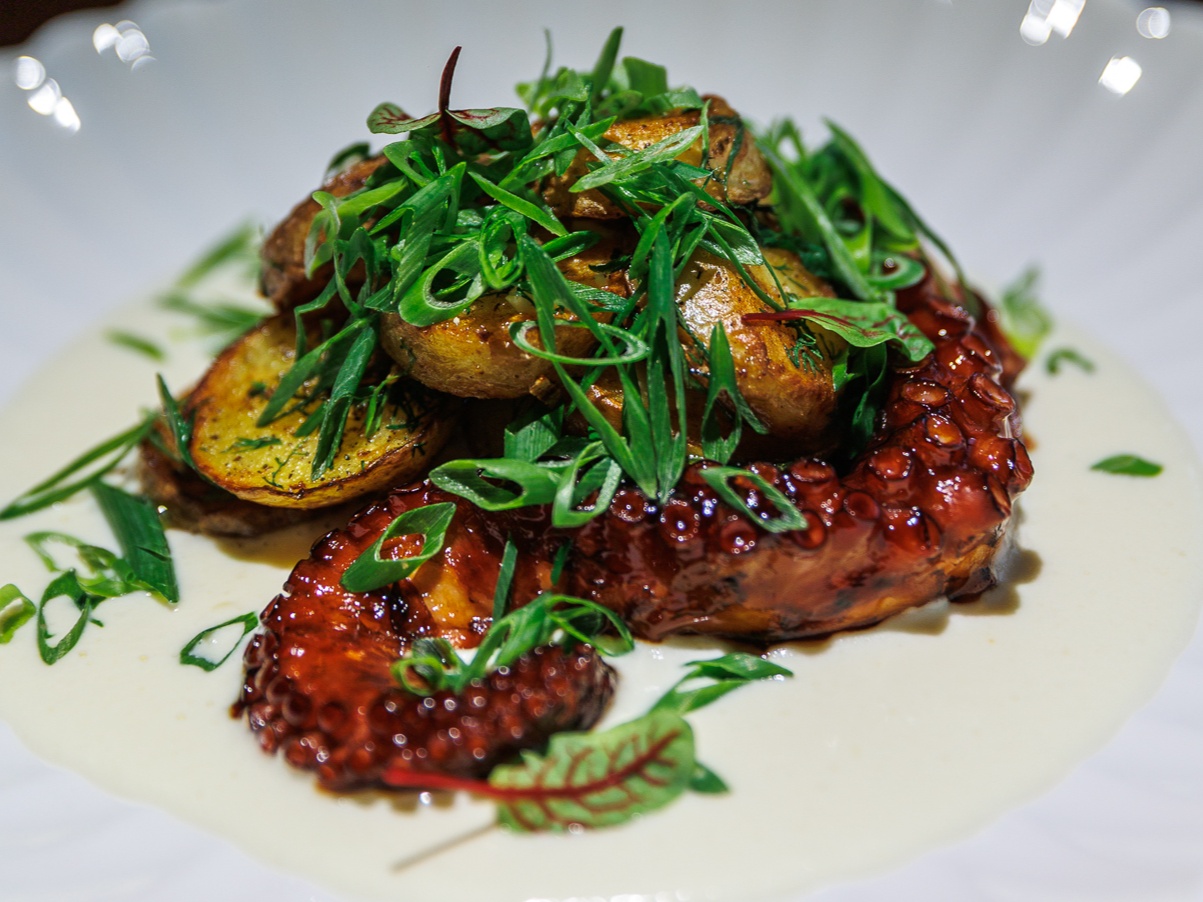Щупальца осьминога с картофелем и сырным соусом